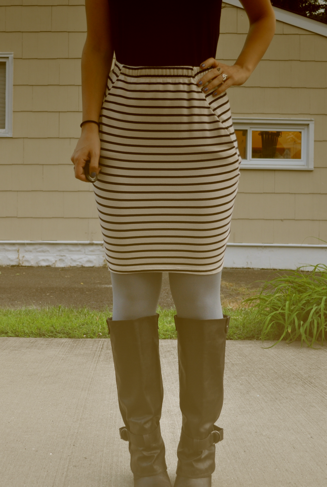 Ooh, I love the stripes. I have a thing for them this year it seems. Killer boots as well. :)